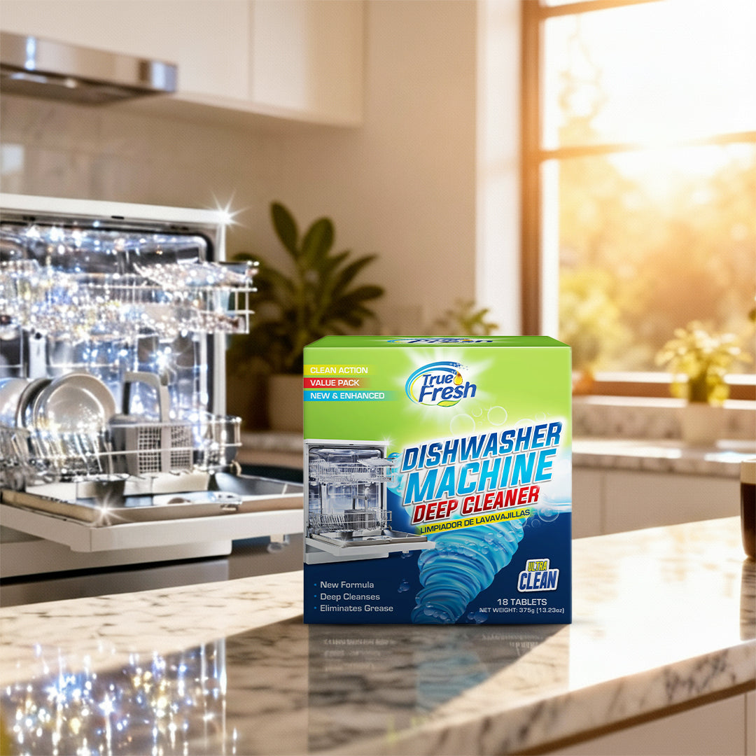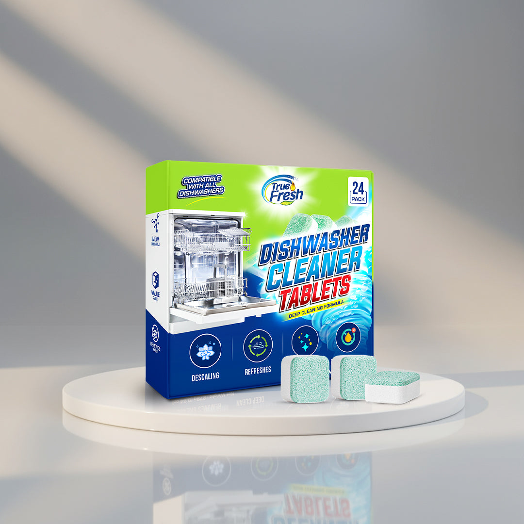 Regular maintenance keeps your dishwasher performing like new. If you notice cloudy glasses, dull dishes, or slow drainage, it’s time for a deep clean. Use True Fresh Dishwasher Cleaner Tablets regularly to keep your machine spotless and running at peak efficiency.
