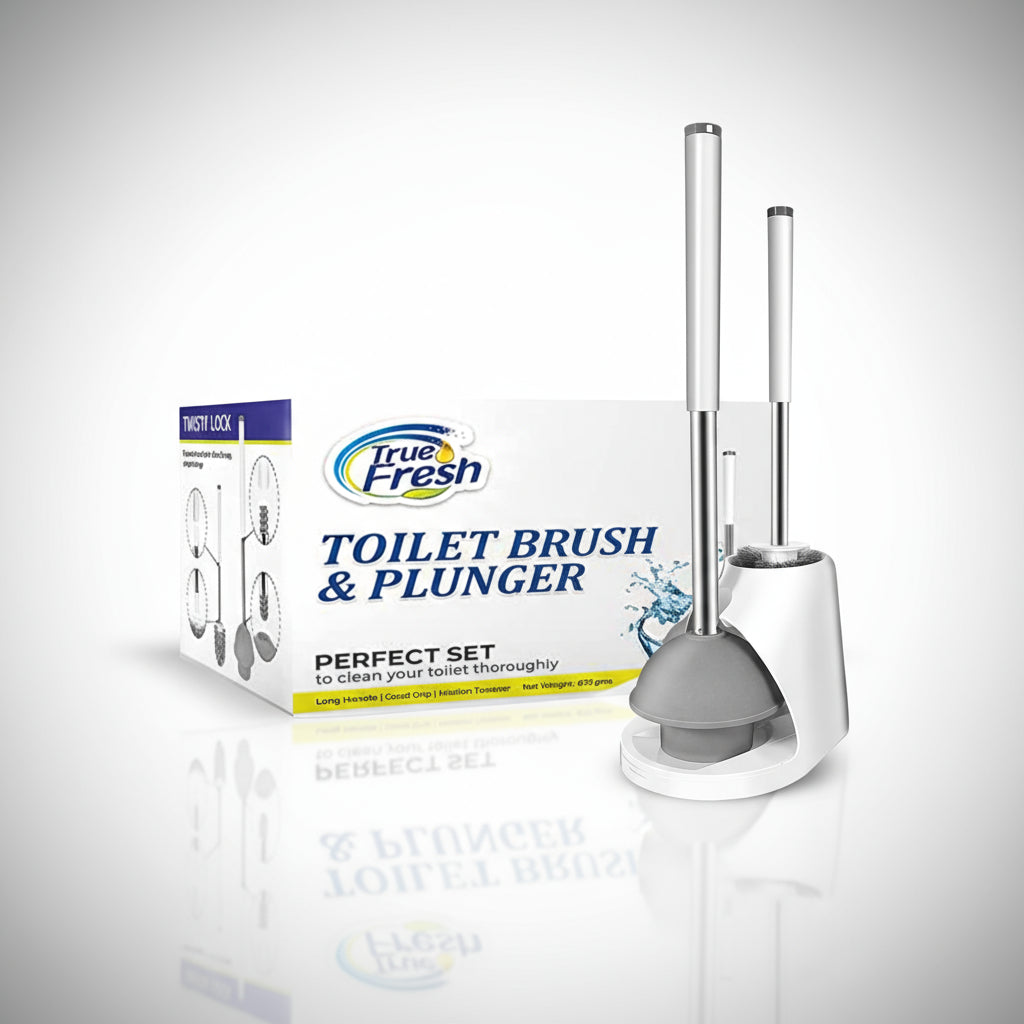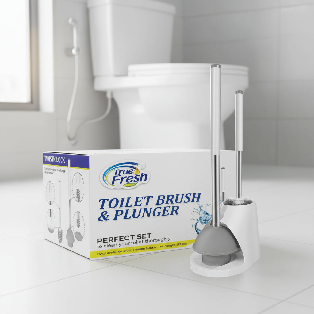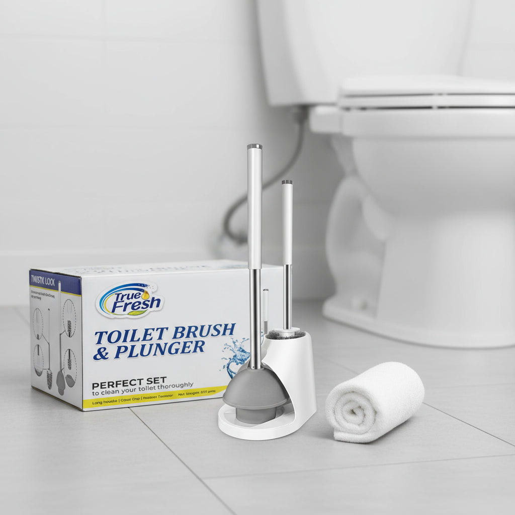 Our 2-in-1 bathroom cleaner set comes with a toilet bowl brush and a plunger.