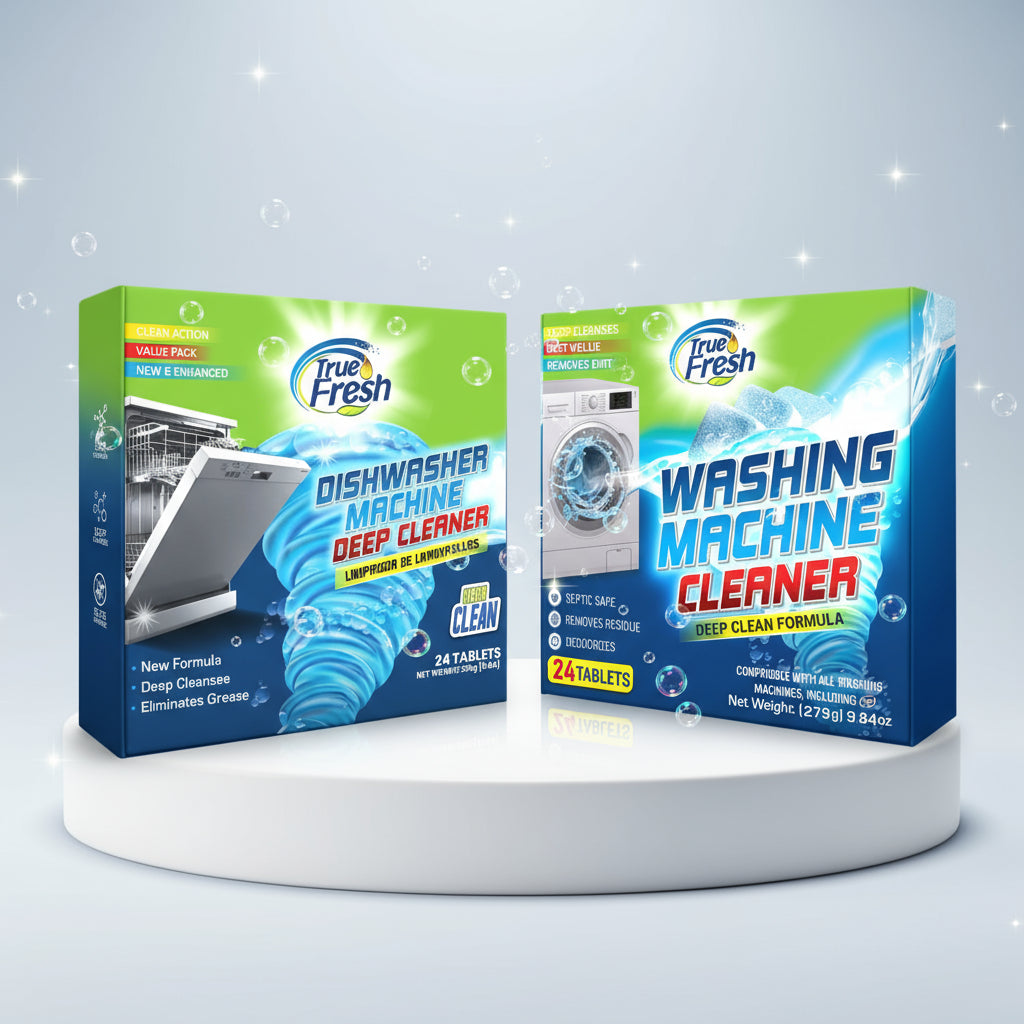 Get the best of both worlds. Each bundle includes True Fresh Washing Machine Cleaning Tablets and True Fresh Dishwasher Cleaner Tablets, offering a total of 24 tablets designed to clean, refresh, and protect your appliances for months.
